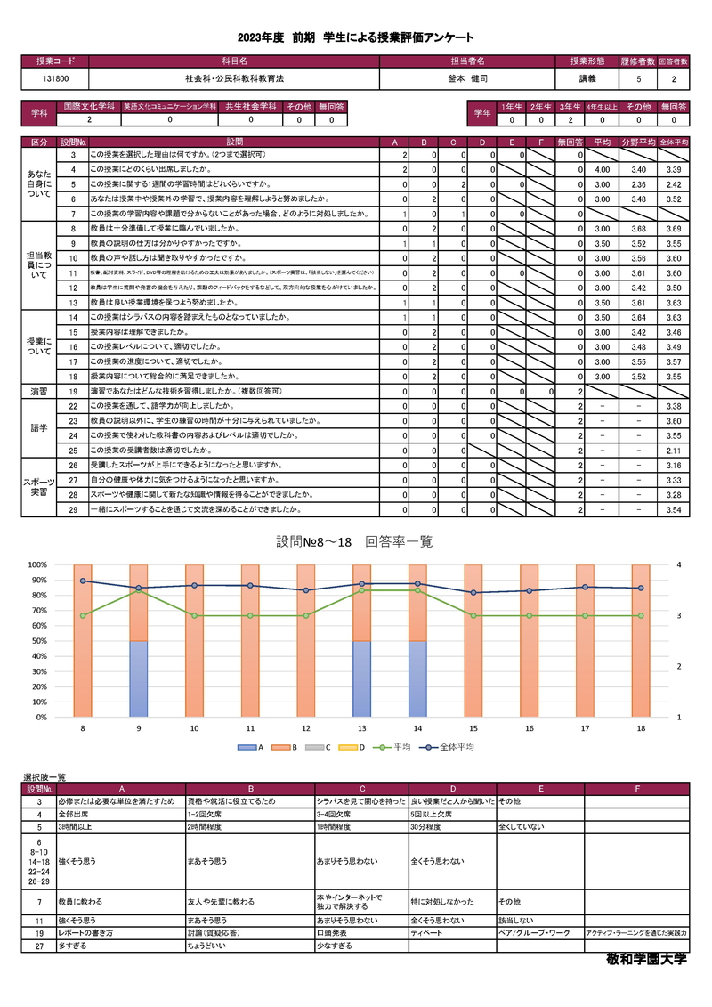 敬和学園大学 授業アンケート集計