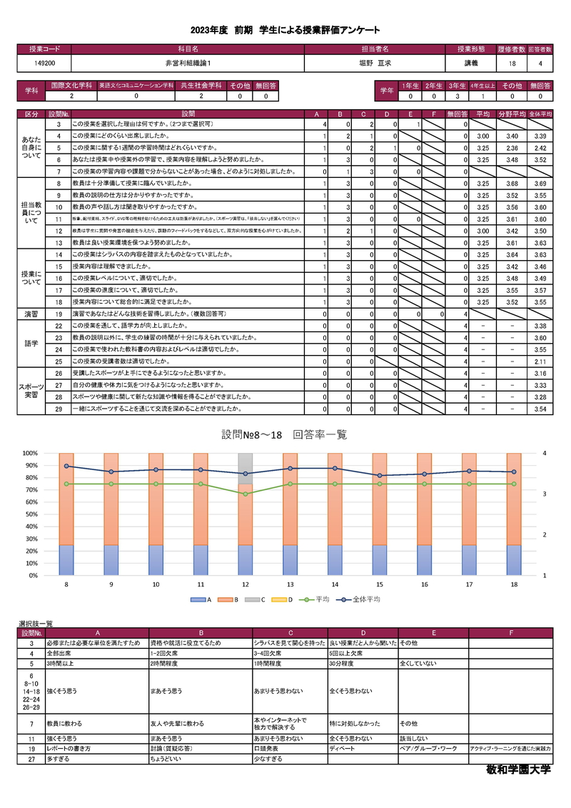 敬和学園大学 授業アンケート集計