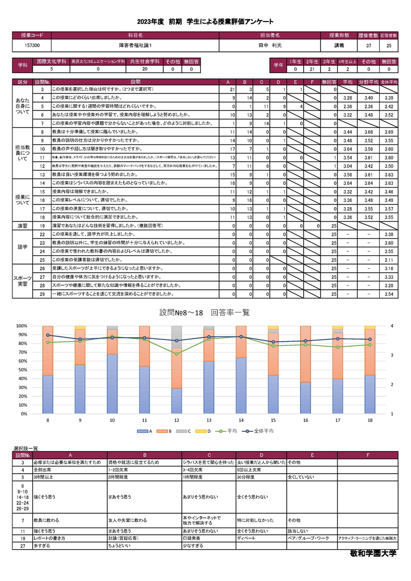 敬和学園大学 授業アンケート集計