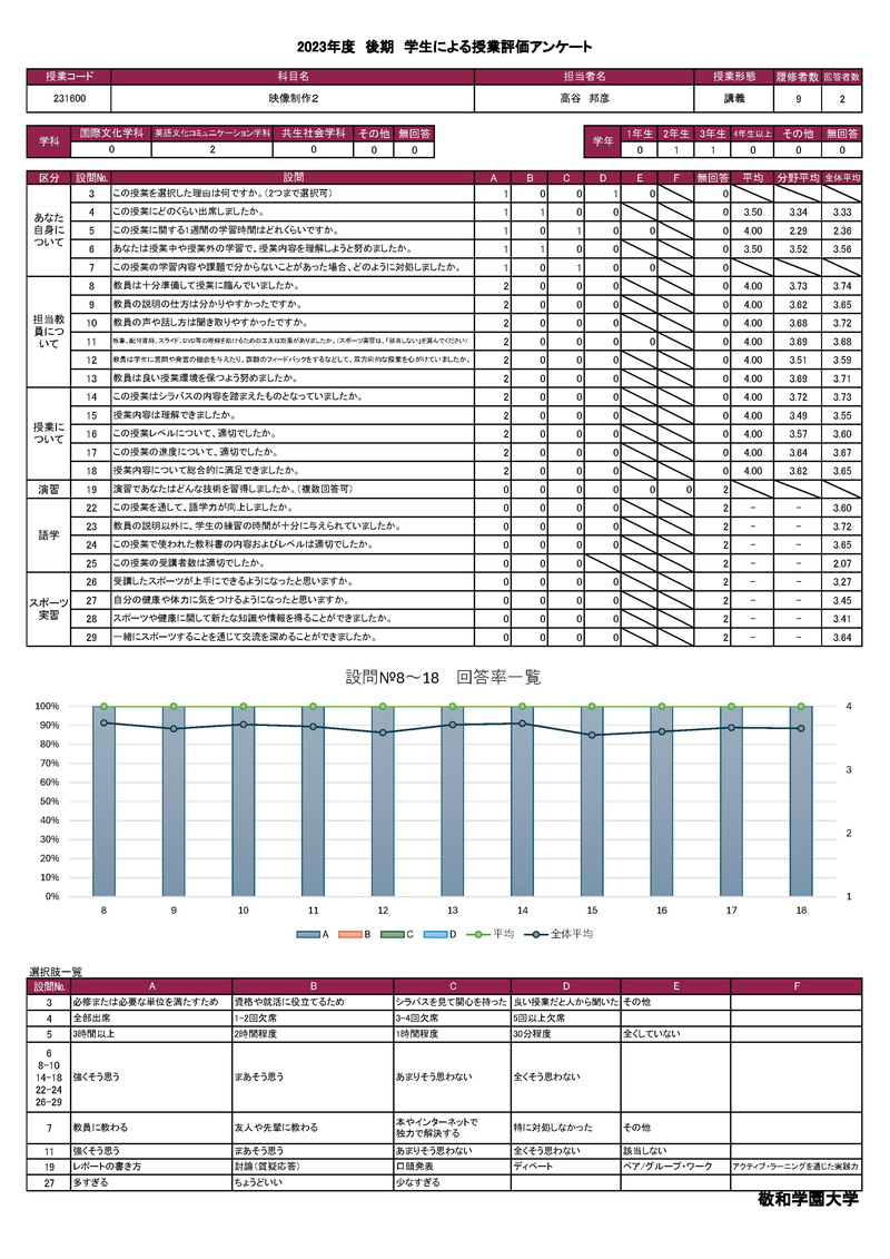 敬和学園大学 授業アンケート集計
