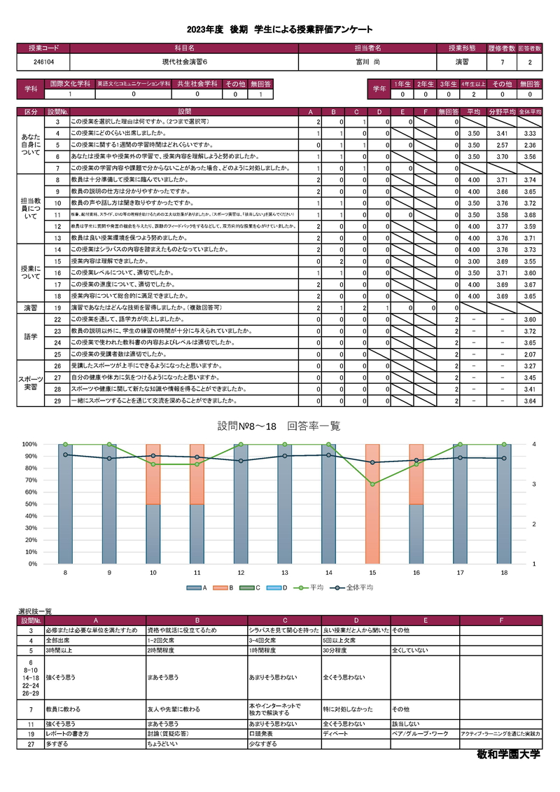敬和学園大学 授業アンケート集計