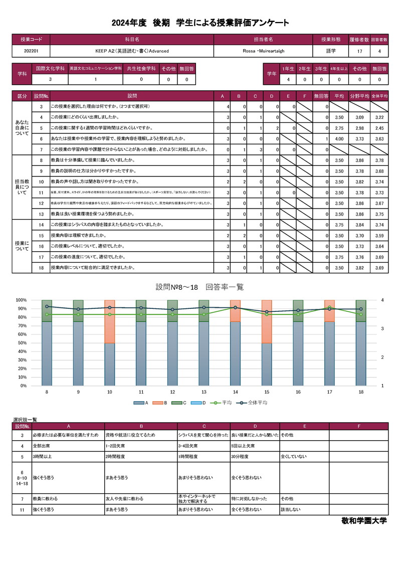 敬和学園大学 授業アンケート集計