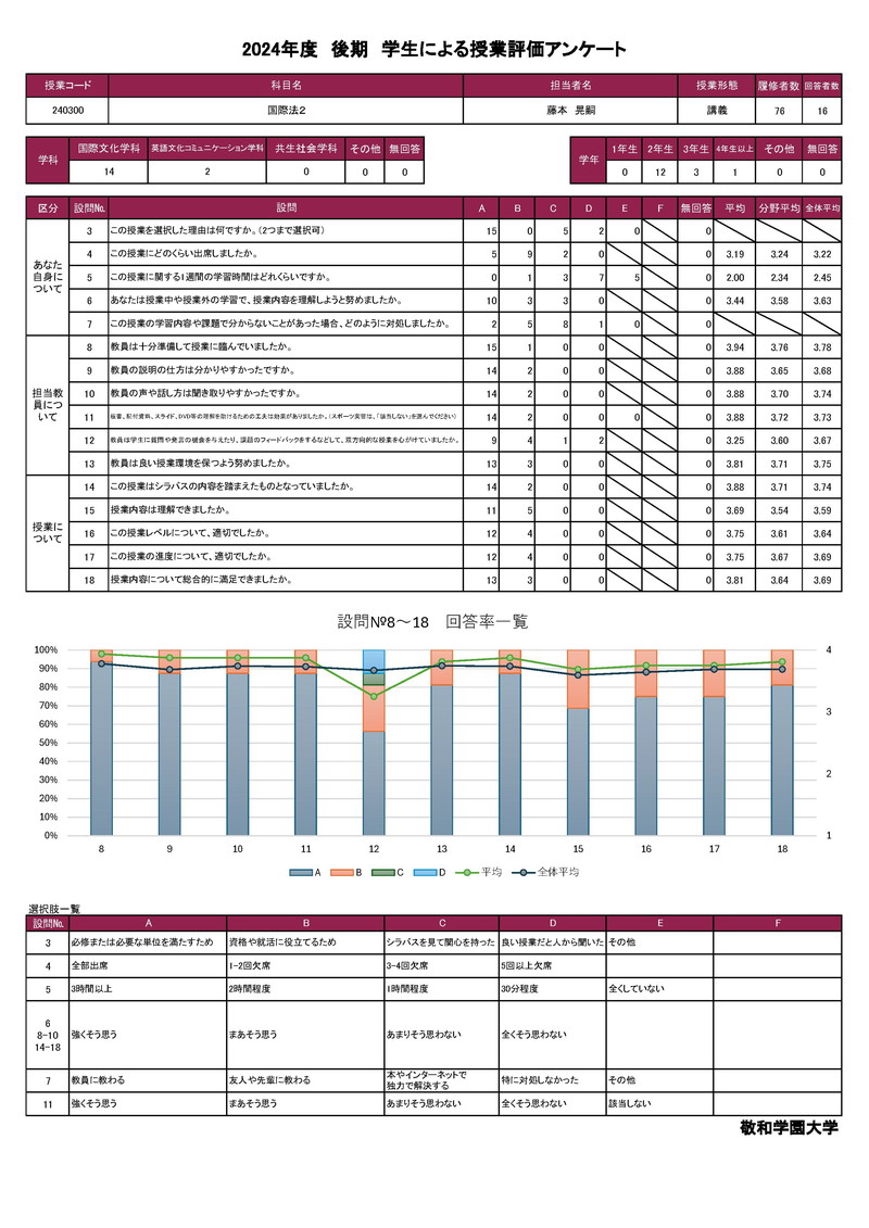 敬和学園大学 授業アンケート集計