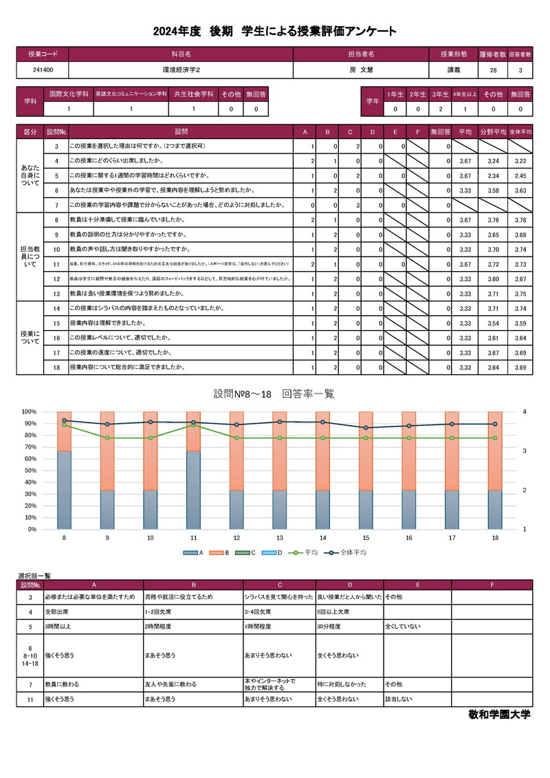 敬和学園大学 授業アンケート集計