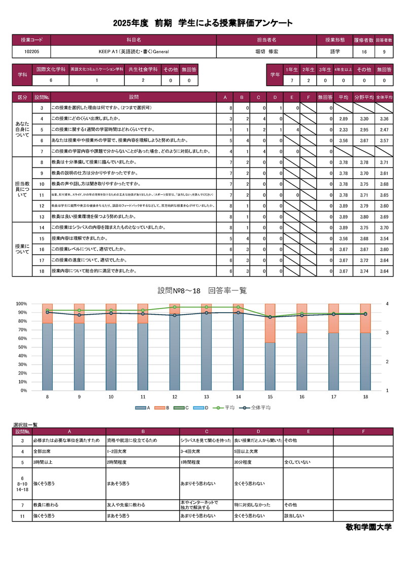 敬和学園大学 授業アンケート集計
