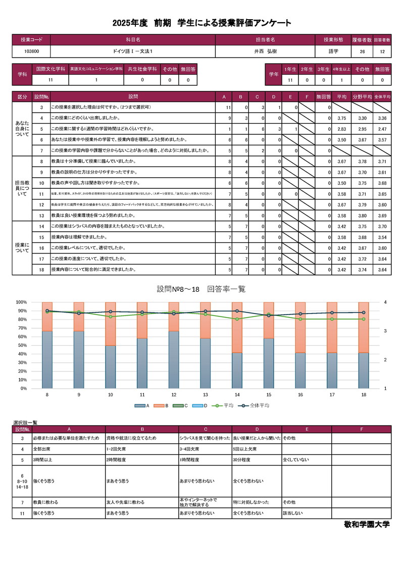 敬和学園大学 授業アンケート集計