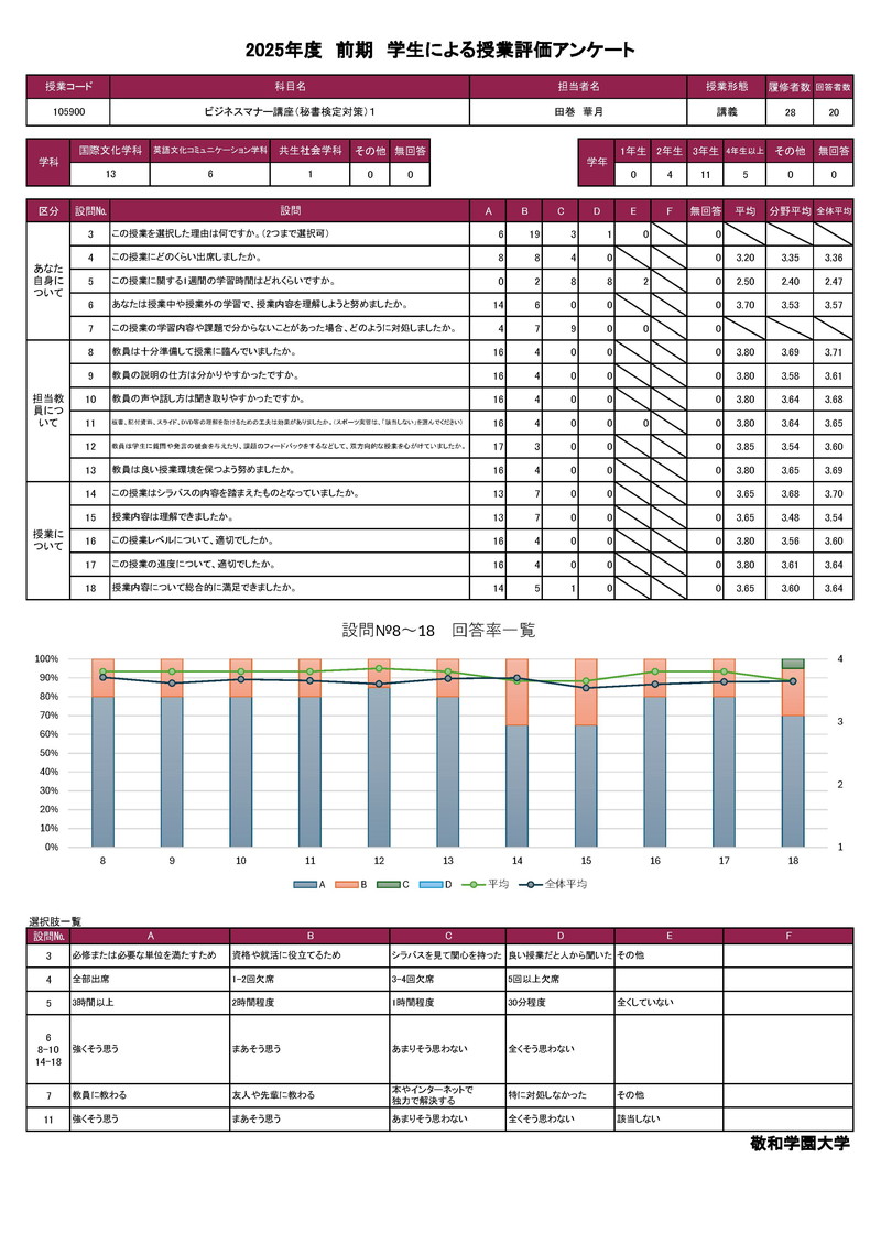敬和学園大学 授業アンケート集計