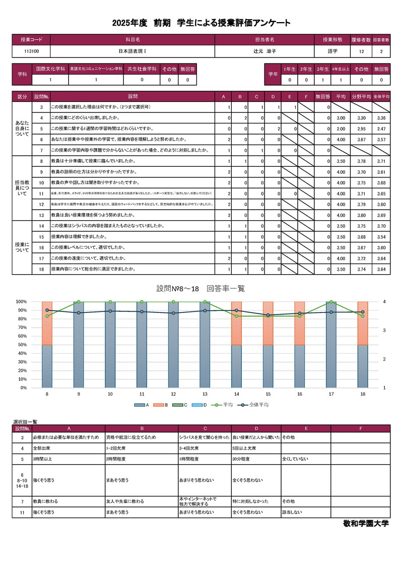 敬和学園大学 授業アンケート集計