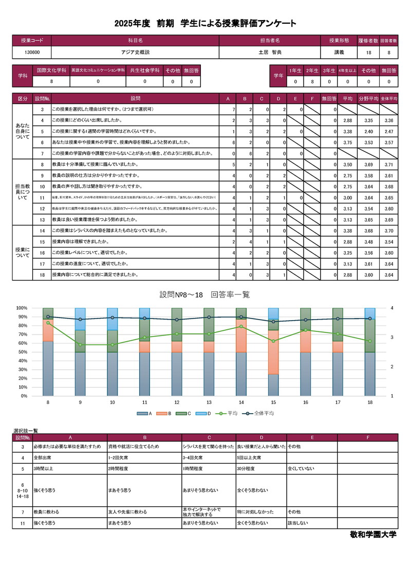 敬和学園大学 授業アンケート集計