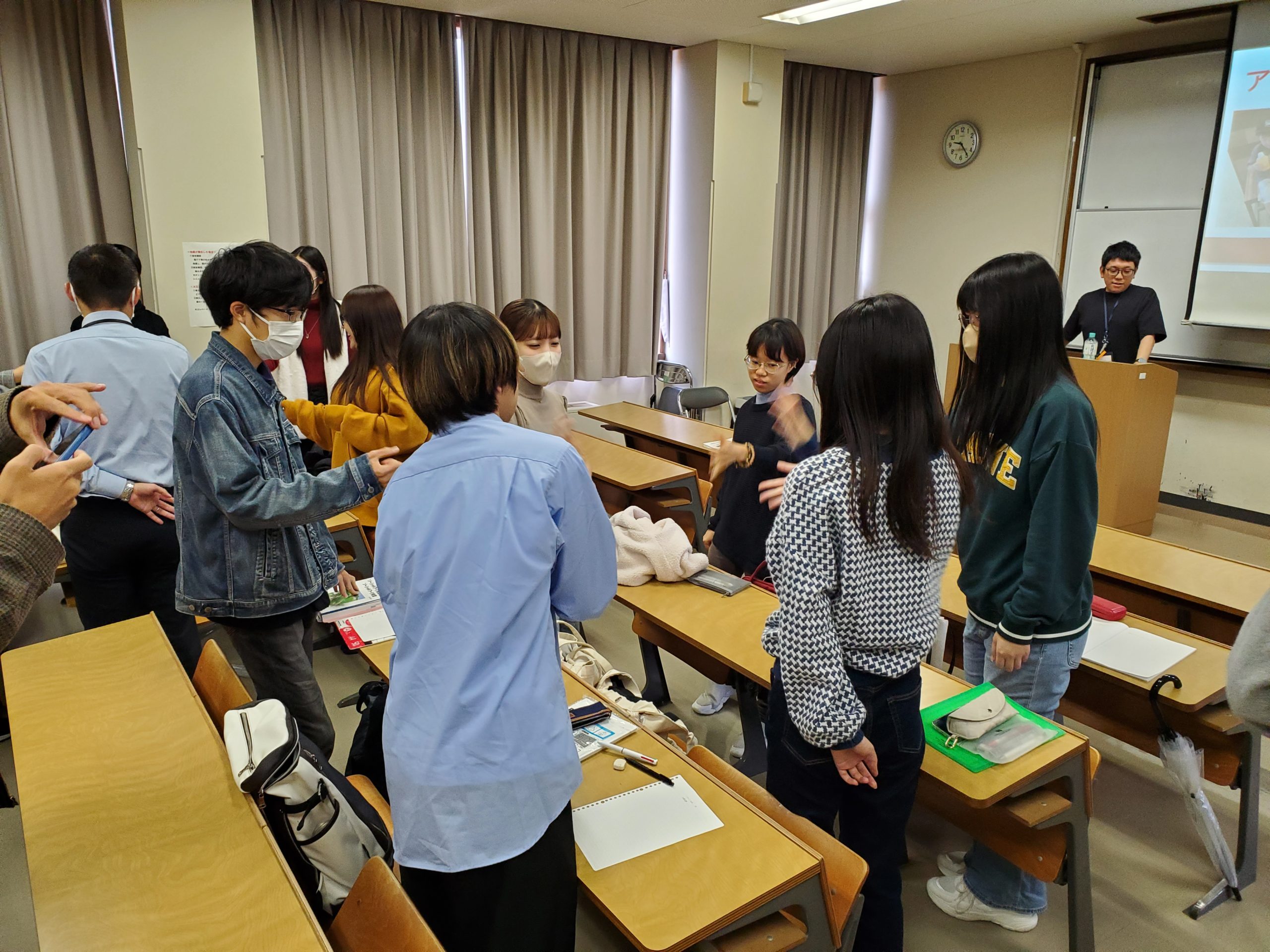 ・趣味のポケモンの話や線香のことが気になる話など、常に笑いをとれる渋谷さんの話術が印象的だった。自分は大勢の人の前で話すことが得意ではないので、渋谷さんのように話上手な大人になりたいと思った。(95文字)