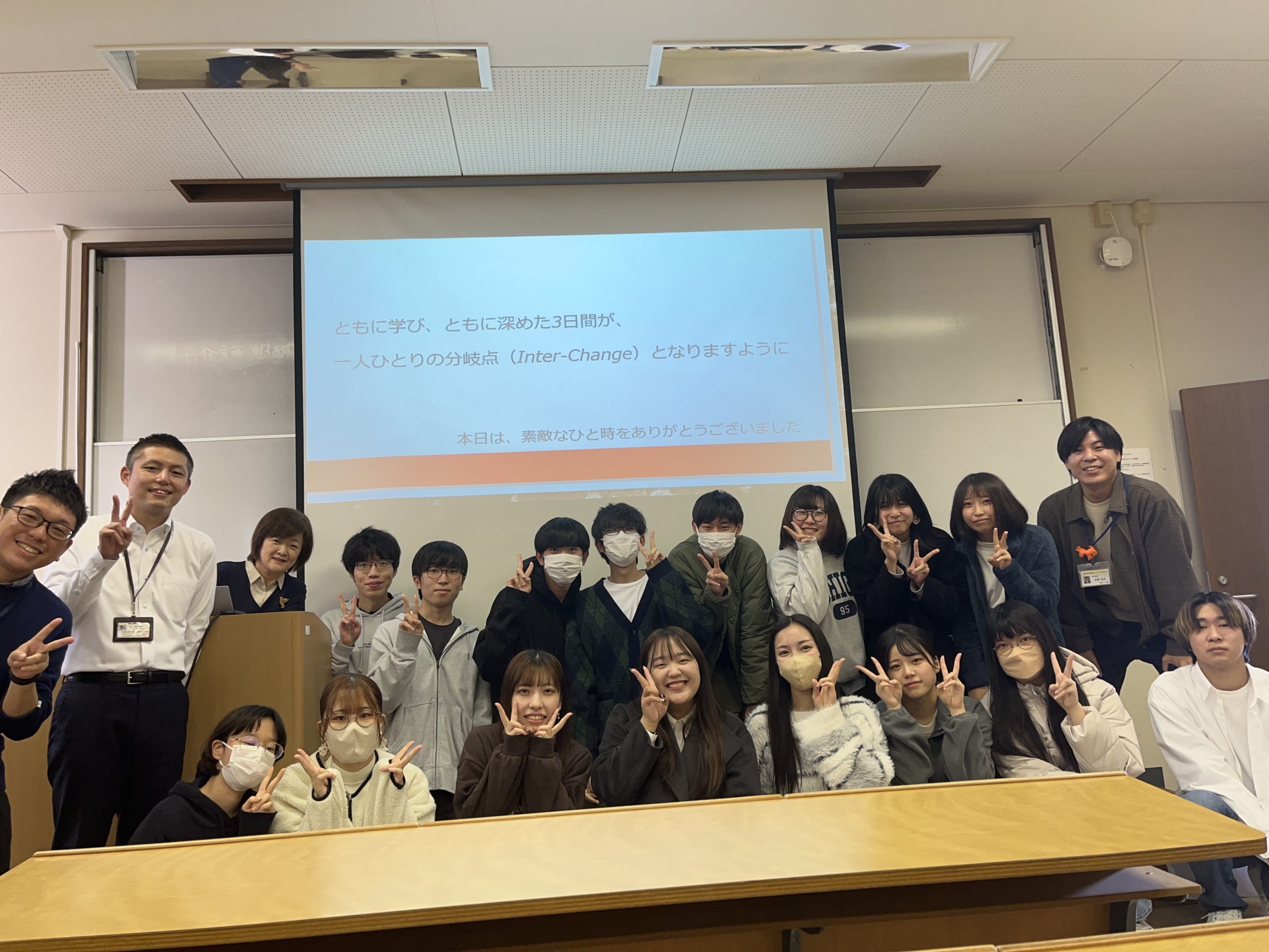 Inter-Changeはソーシャルワーカーと学生、社会が交わる機会を創出することを目的として(公社)新潟県社会福祉士会の自主活動グループとして立ち上げられました。このグループを立ち上げた3名のソーシャルワーカーが、11月1日から3回にわたり、本学のソーシャルワーク実習指導に協力してくださいました。それぞれ90分という限られた時間で、自己紹介(福祉の仕事についた理由や経歴)、事例紹介、ワークショップを行ってくださいました。