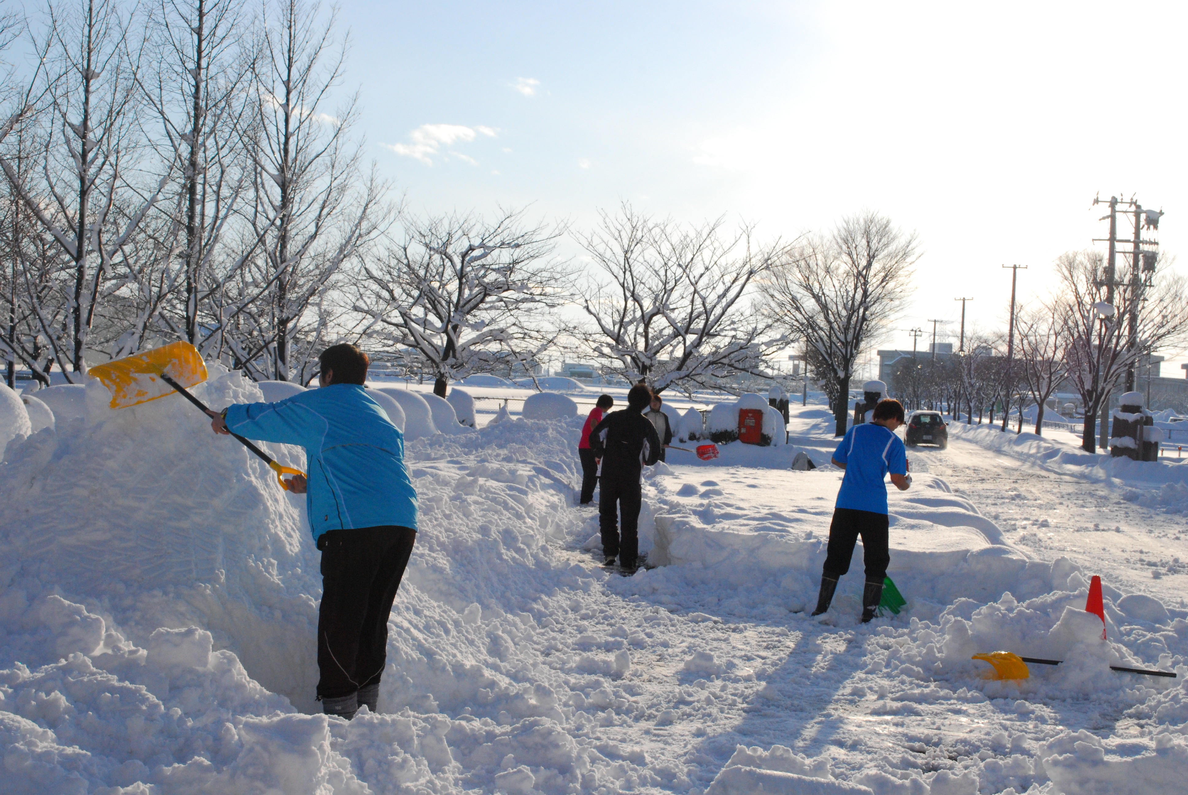 新潟に来て2年目だけど、今年はすごい大雪。人生初の雪かきまで体験。これが足腰が結構つらい。しかし、これはいいトレーニングになると思い、さっそく選手に大学の雪かきをさせました。