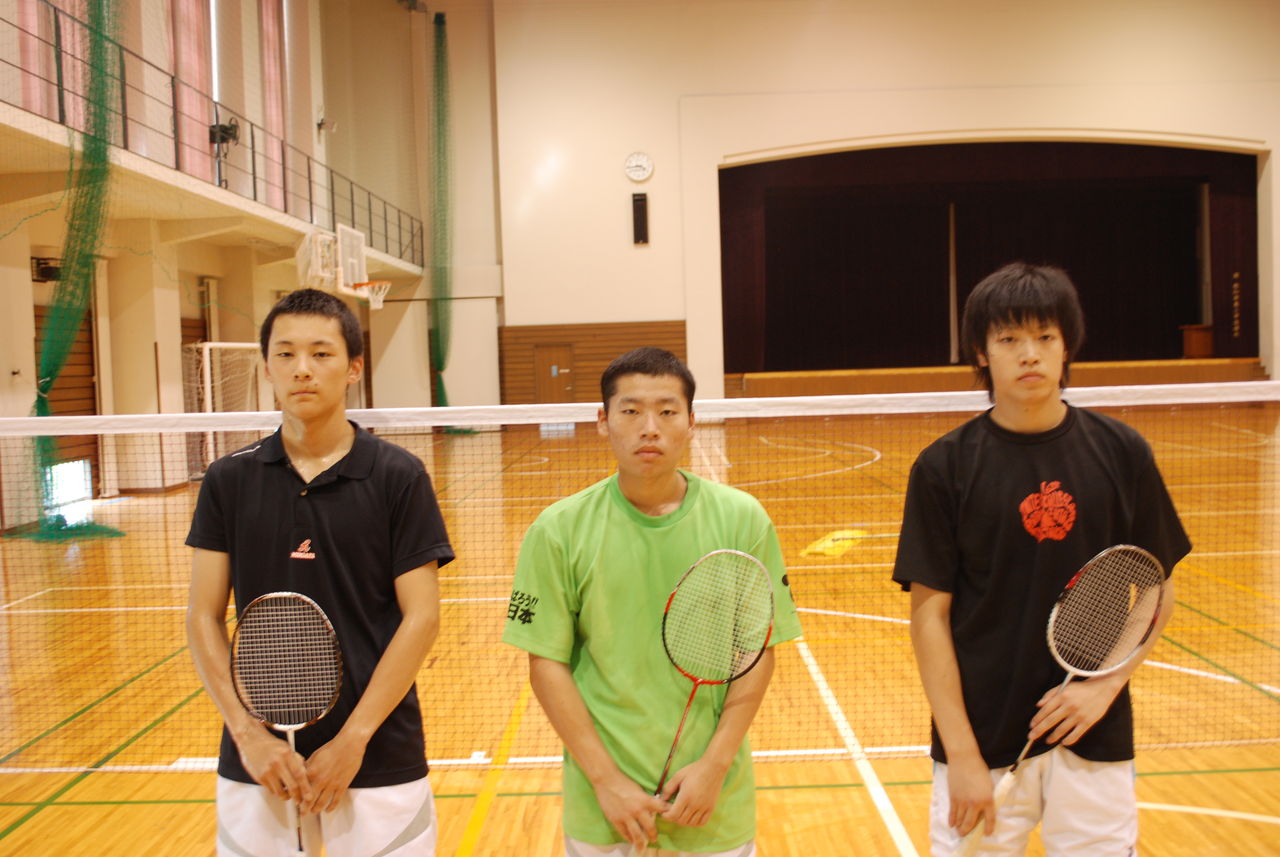 吉川誠(写真中央)は広島県からバドミントンを一生懸命頑張りたいということで敬和に来てくれました。入学当初は体力もなかったけど、この半年で力がついてきました。チームの盛り上げ役で面白いやつです。