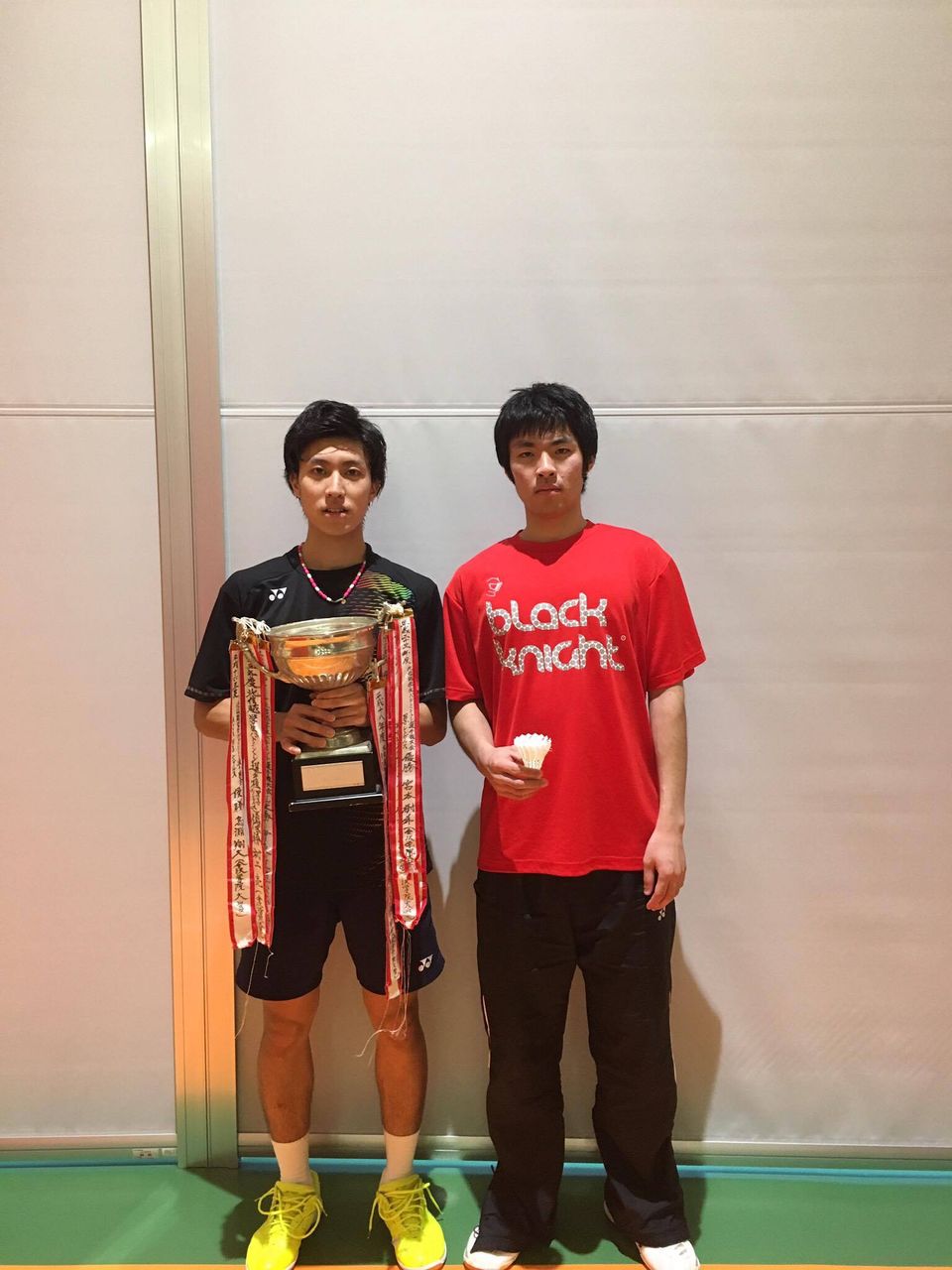 出ていない選手もいるんですけど、中家が男子シングルス1部で、坂井が男子シングルス2部で優勝しました。