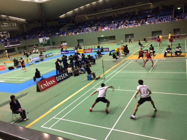 平成29年度全日本総合バドミントン選手権大会男子ダブルス2回戦小川・柴田組 0 - 2 岡村・小野寺組(日本ユニシス・早稲田大学)
