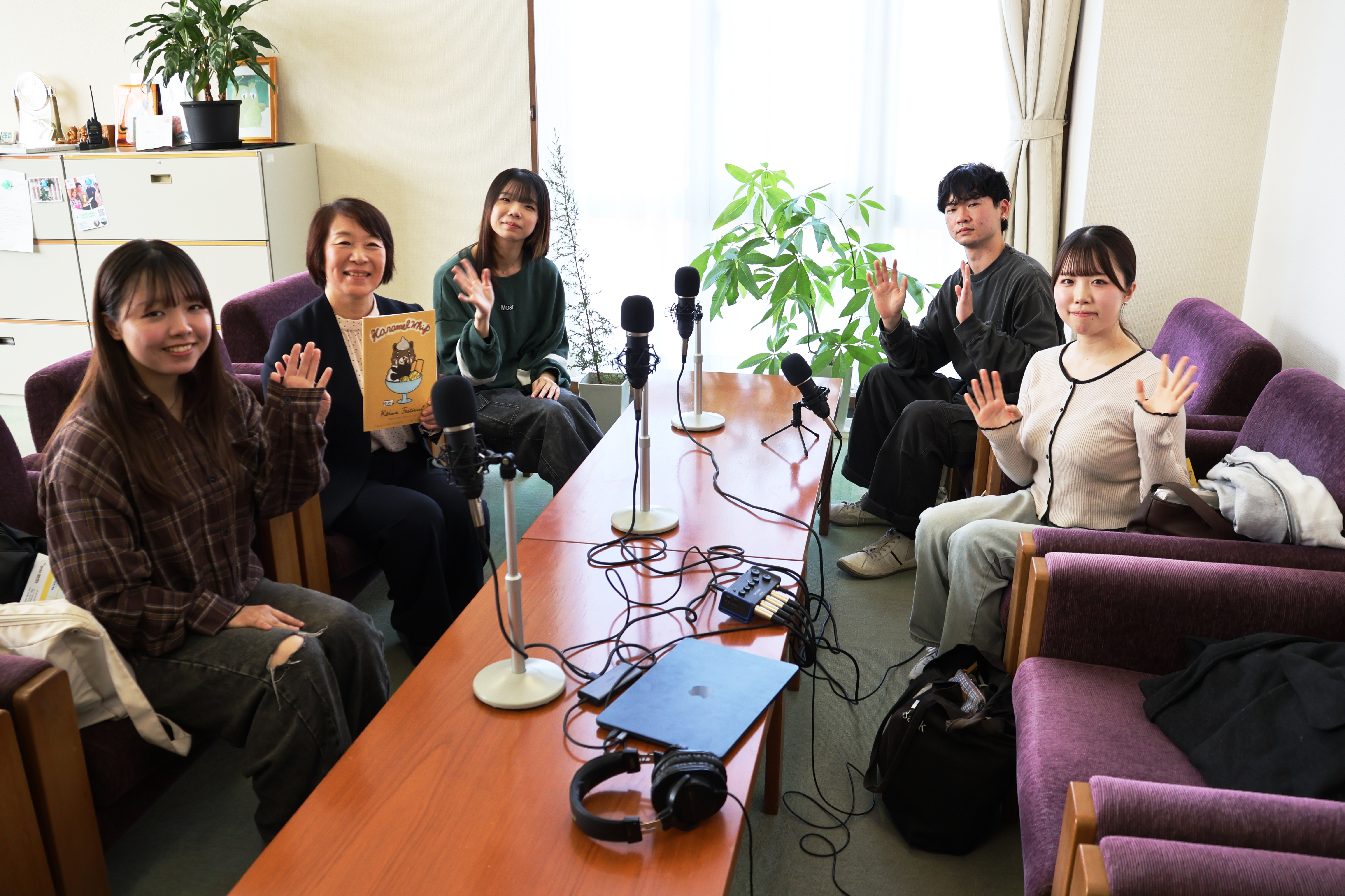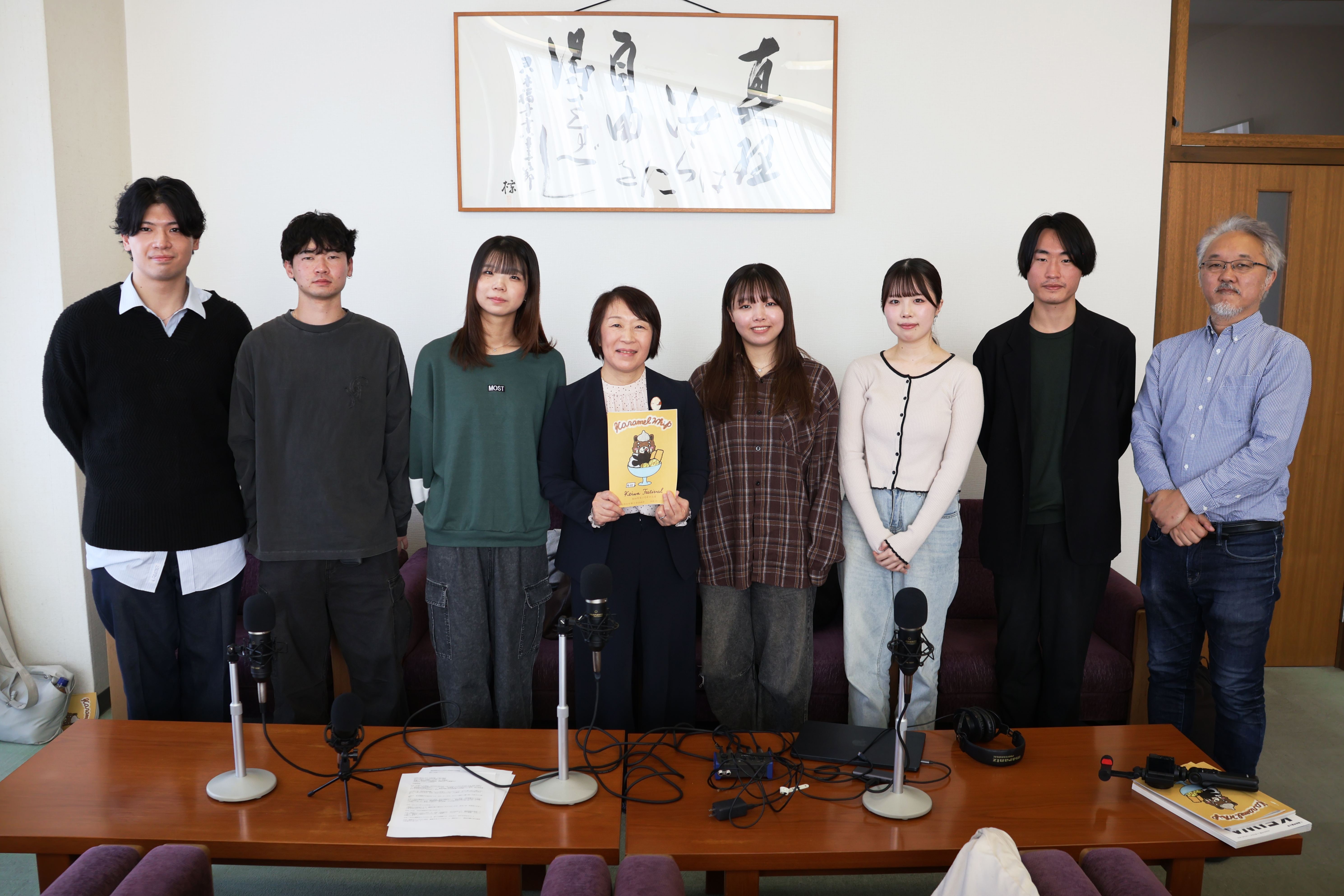 「敬和キャンパスレポ」 の収録、金山学長と敬和祭実行委員会の皆さん