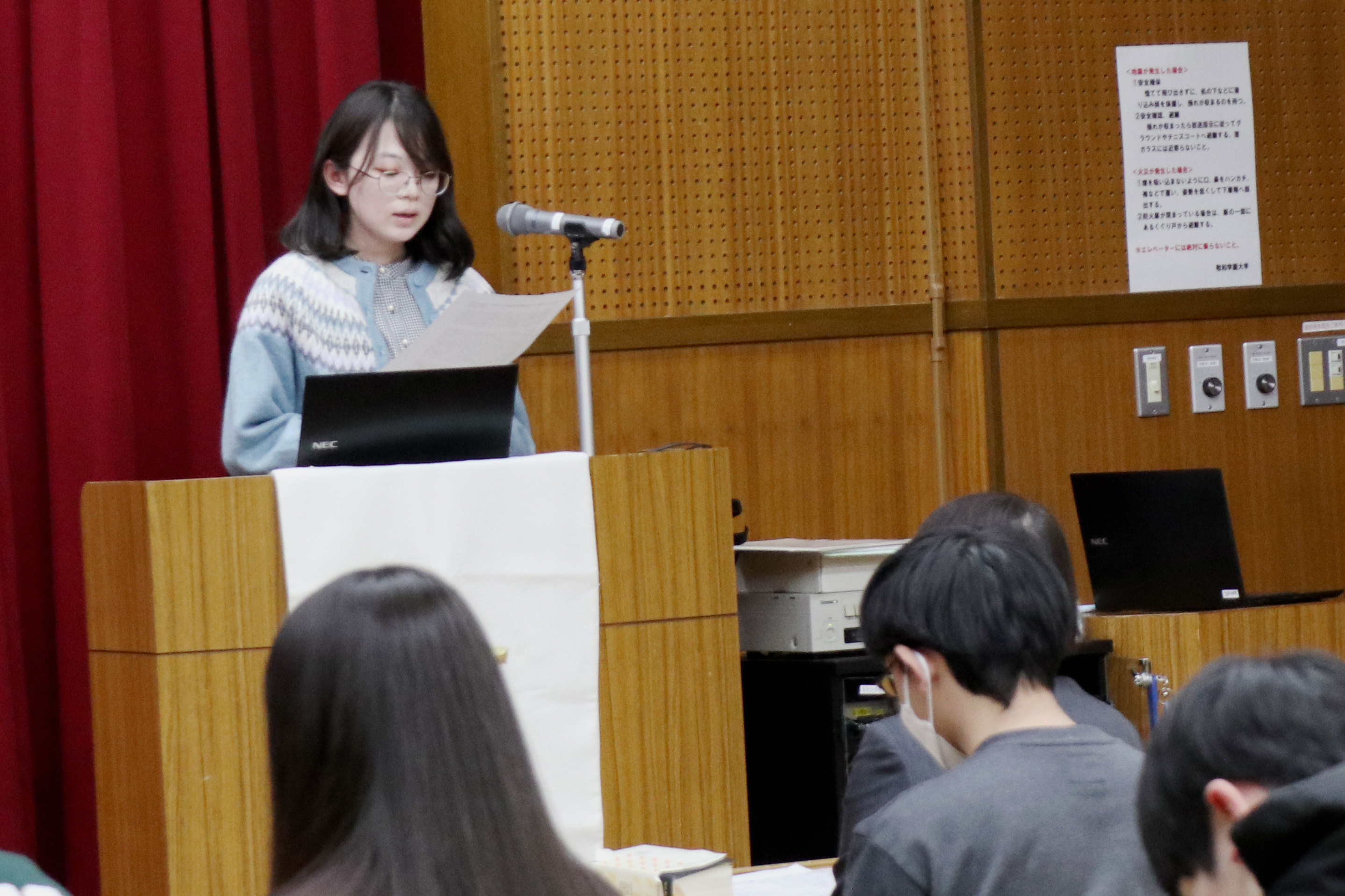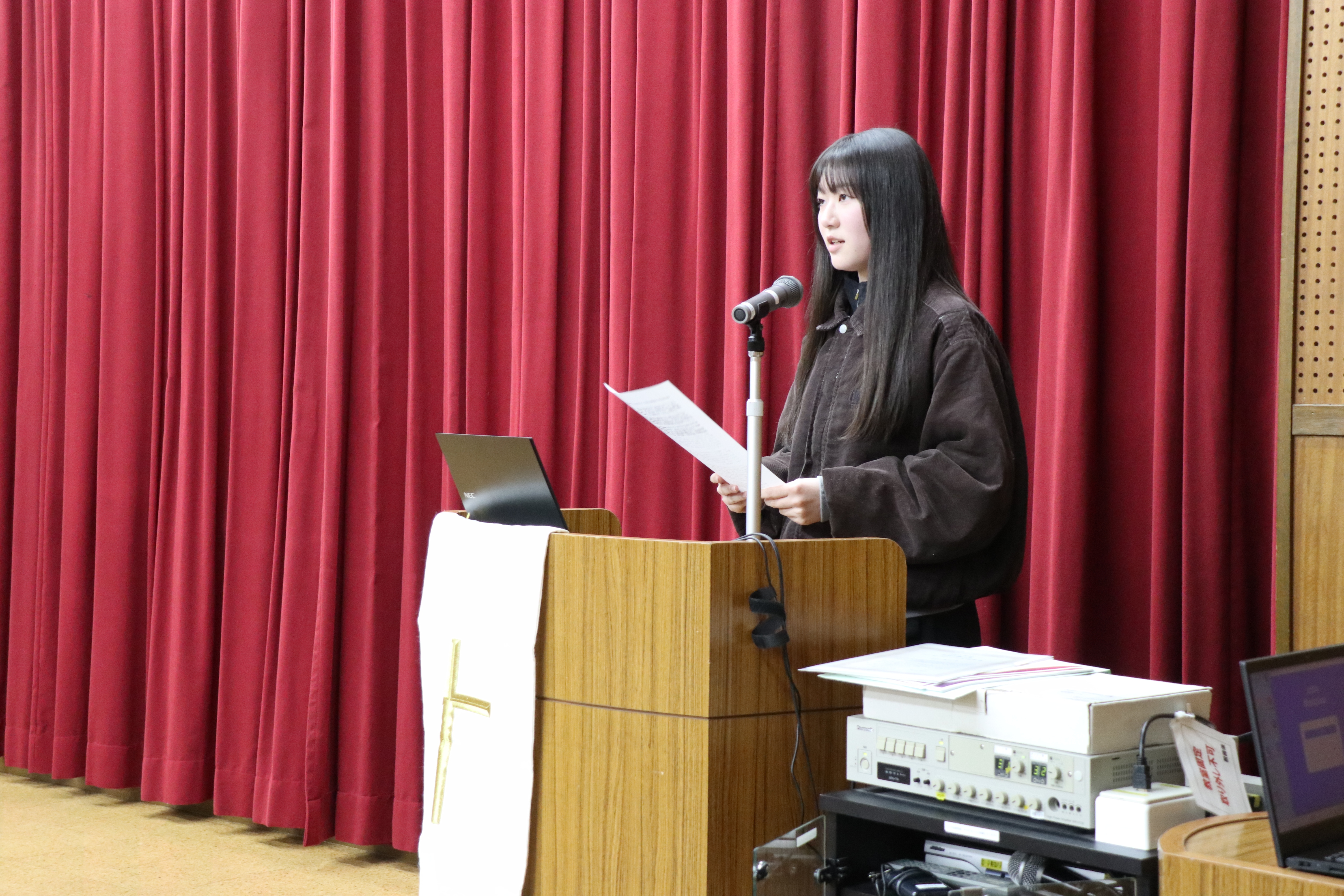 エッセイコンテスト チャペル賞の駒倉衣織さん(国際文化学科4年)