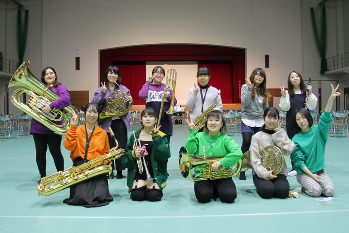 部員の好きな曲を選曲をして楽しく演奏しています。個々の技術の向上を目指して練習、合奏、本番まで全力で取り組みます。(英語文化コミュニケーション 菅詩音)